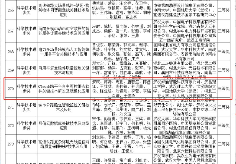 2025年1月6日,湖北省科技创新大会在武汉举行。会上宣读了《湖北省人民当地关于2024年度湖北省科学技术奖励的决定》,共授予337项(人)科学技术奖励。其中以HJC黄金城官方网站作为第一完成人,项目名“QTouch跨平台自主可控组态软件关键技术研发及规模化应用”荣获科学技术进步三等奖。