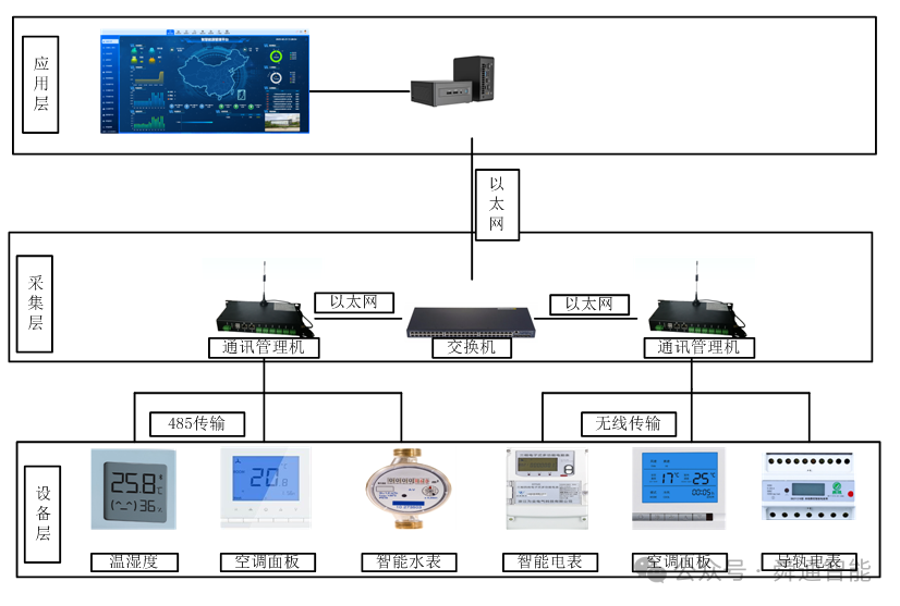 无锡某大学,坐落于风景秀丽的太湖之滨,不仅以其卓越的学术成就闻名,更在智慧校园建设方面走在前列。近年来学校积极响应国家“双碳”战略,将绿色低碳理念融入校园建设,其中无锡某大学携手HJC黄金城官方网站,专业智能化解决方案提供商,打造了一套集智能控制、能耗监测、数据分析于一体的智能空调管控平台,为解决传统空调系统的痛点。传统的校园空调系统普遍存在能耗高、管理难、舒适度低等问题,痛点凸显,智能化升级势在必行。无锡某大学也不例外,随着校园规模扩大和师生人数增加,空调能耗逐年攀升,给学校运营带来巨大压力。同时分散的空调设备缺乏统一管理,难以实现精准控制和节能优化,室内环境舒适度也难以保障。打造了一套集智能控制、能耗监测、数据分析于一体的智能空调管控平台。管控平台系统架构,该系统以物联网技术为依托,通过传感器、控制器、通讯管理机等设备,实现对校园内所有空调设备的实时监控和远程控制。设备层:主要通过安装传感器,温湿度,智能电表等设备,进行实时监测获取各回路的相关能源参数。采集层:安装通讯管理机,根据设备层安装的设备,把数据实时采集到通讯管理机里。应用层:大屏等方式展示出能耗信息,实时曲线数据,报表数据,控制数据,定时策略,统一管理等功能。监控大屏:实时监控空调能耗,发现高耗能问题并自动调节空调运行状态。 空调监控:通过通讯管理机可以清晰看到每一个空调的状态,对不同区域的设备,进行模式,温控,风速,实时监控数据,避免无人区域浪费能源控制下发:通过通讯管理机实时监测室内外温度,减少能耗,可以调节温度,风速,模式等历史数据:监控每一个空调模块的历史数据,温度,开关记录。控制策略:通过通讯管理机可根据日期,时间,定时远程控制空调开关,夏季设定在26-28℃,冬季在18-20℃,避免过低或过高的温度设定。确保空调在需要时运行,减少空转时间。通过智能空调管控平台建设,系统优势显著,成效斐然节能减排, 系统通过智能算法,根据室内外环境温度、人员密度等因素,自动调节空调运行状态,避免能源浪费。据统计,系统运行以来,校园空调能耗同比下降20%以上,有效降低了运营成本,为节能减排做出了积极贡献。精细化管理,提升效率:系统提供可视化的数据平台,管理人员可实时查看每台空调的运行状态、能耗数据等信息,并进行远程控制,大大提高了管理效率。