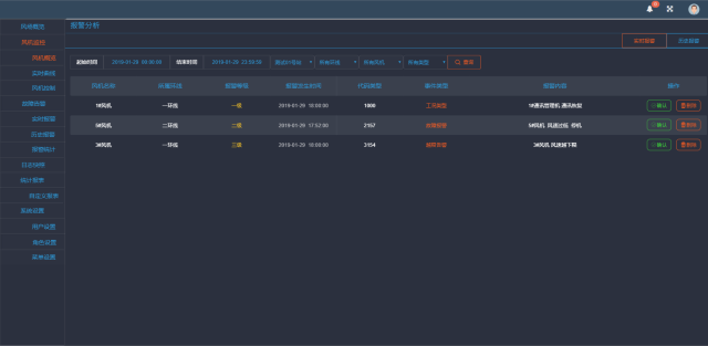 4)历史数据:可查看时间段内风机运行的状态曲线
