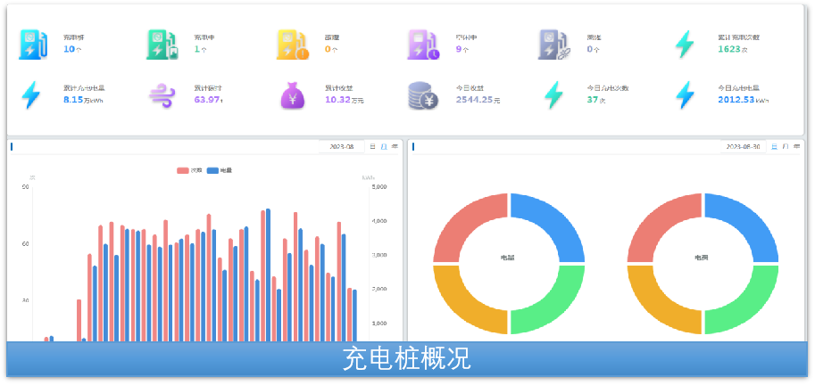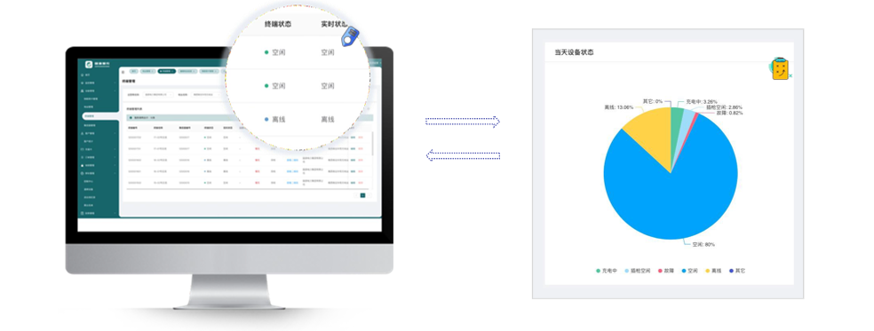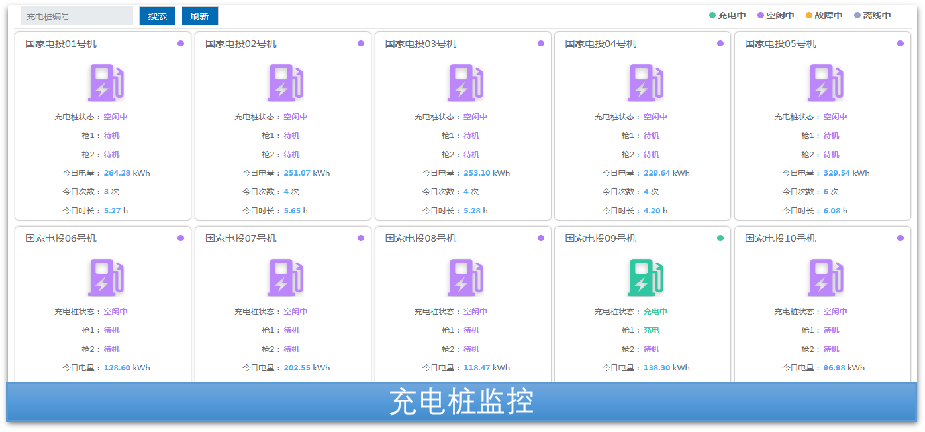 实时监控充电枪运行状态:空闲、使用中、故障、离线,设备状态实时掌握。更清晰的看到不同时段的终端利用率