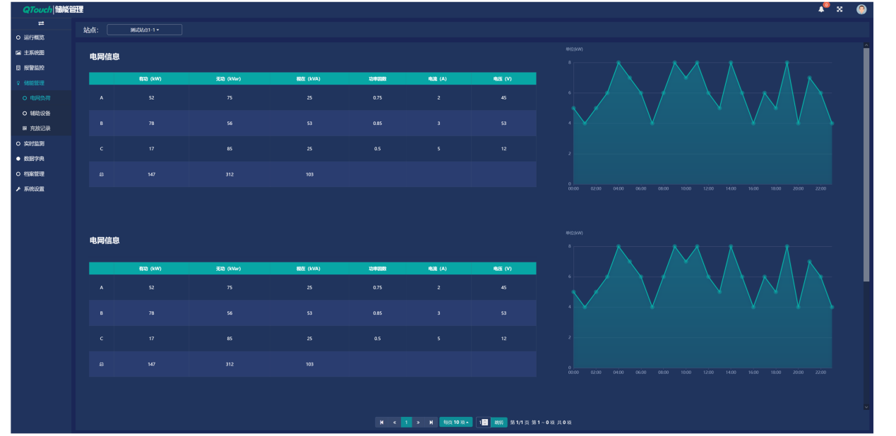 全景监控储能站点,重点关注储能变流器运行状态,充放电量、转换效率: