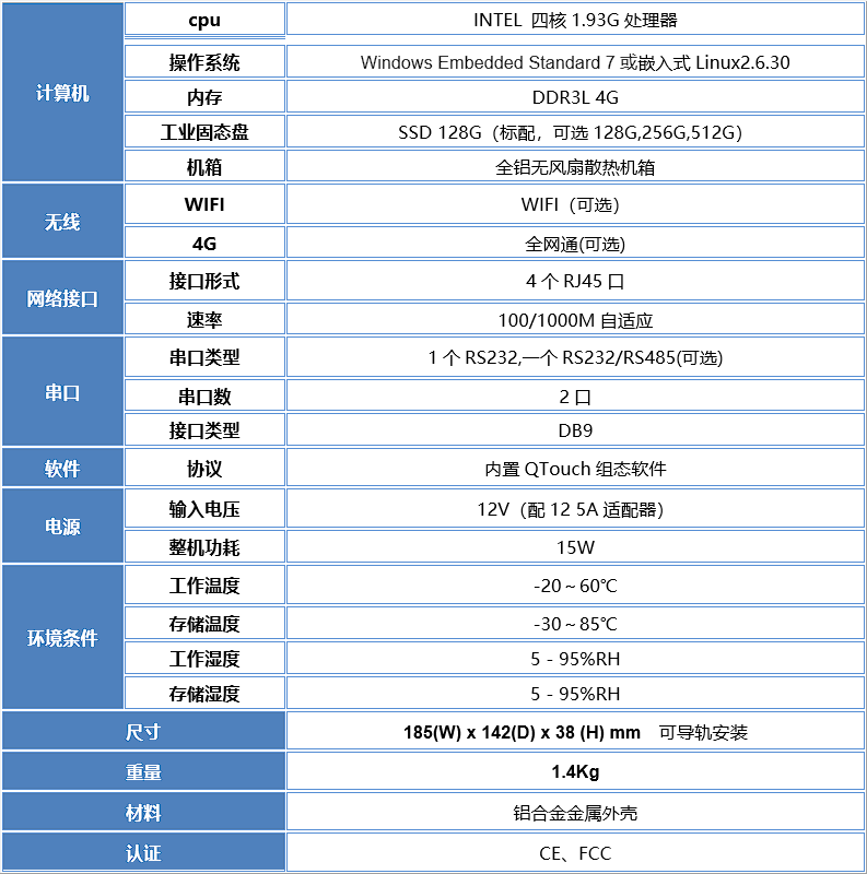 QT264(G)边缘计算机专门为工业设计,广应用于电力自动化、工业自动化、能源互联网、工业物联网等,其采用ITNEL低功耗高效能处理器,系统上可以使用选嵌入式 Windows Embedded Standard 7或精简内核LINUX嵌入式操作系统,真正实现了工业现场的“3C”(现场控制,现场计算,现场通讯)的要求。它既可以使用直接通过自带以太网口向上传输数据,也可以选择4G无线通讯即时发送数据,还可以建筑能耗采集,能源工作站等使用形成现地控制单元分层分布应用。