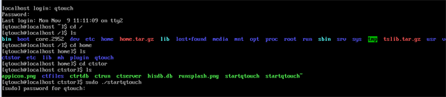 注:操作熟练情况下我们输入用户名密码后只需输入:sudo /home/ctstror/startqtouch即可运行Qtouch